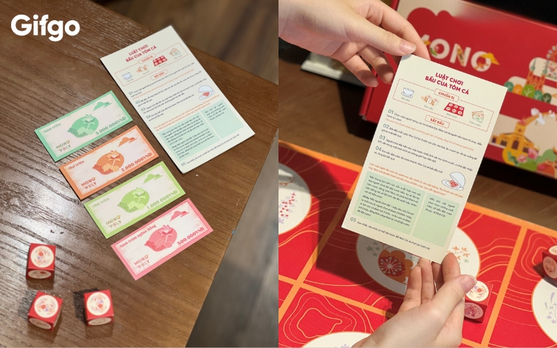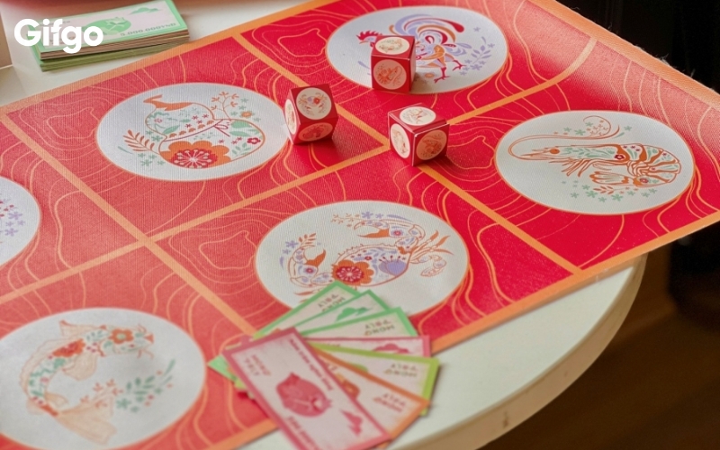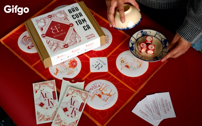 Một trong những yếu tố được nhiều khách hàng quan tâm khi lựa chọn quà Tết chính là mức giá và giá trị nhận được. Với thiết kế chỉn chu, đầy đủ phụ kiện và tính ứng dụng cao trong dịp Tết, bộ bầu cua tôm cá cao cấp của Gifgo được định vị ở mức giá hợp lý, phù hợp với nhiều nhu cầu sử dụng khác nhau, từ chơi Tết gia đình đến làm quà tặng.