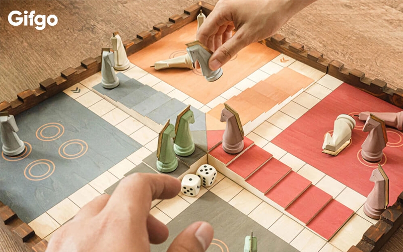 Bàn cờ thiết kế ấn tượng: Bàn cờ của Gifgo sở hữu họa tiết độc quyền, màu sắc sắc nét và chất liệu bền bỉ, tạo nên một không gian chơi đầy cảm hứng.