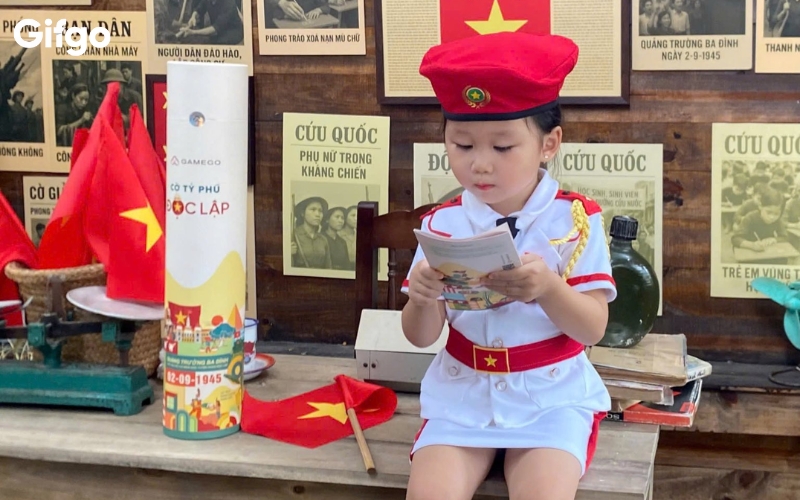Tổng thể thiết kế mang cảm giác điềm tĩnh, mạch lạc và rất Việt Nam, như cách lịch sử dân tộc được kể lại bằng hình ảnh gần gũi, dễ hiểu. Tông màu đỏ - vàng - xanh được phối vừa đủ, gợi liên tưởng đến cờ Tổ quốc, những dấu mốc lịch sử và tinh thần độc lập xuyên suốt từ quá khứ đến hiện tại.