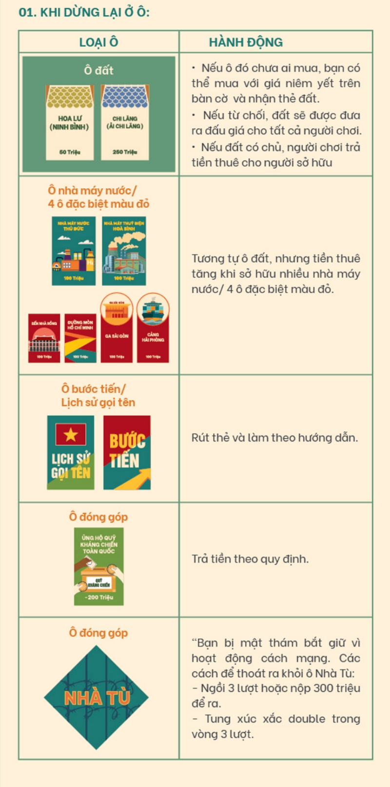 Bộ thẻ Ô Đất tương ứng với các ô địa bàn trên bàn cờ