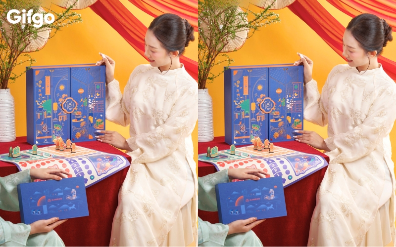 Gifgo không chỉ bán lẻ bộ cờ mà còn khéo léo đưa trò chơi này vào các set quà Tết tinh tế. Một hộp quà tết cao cấp bao gồm trà ngon, bánh mứt và một bộ Ô ăn quan cao cấp sẽ là lời chúc đoàn viên đầy sâu sắc mà bạn có thể dành tặng cho đối tác, cấp trên hay những người thân yêu.