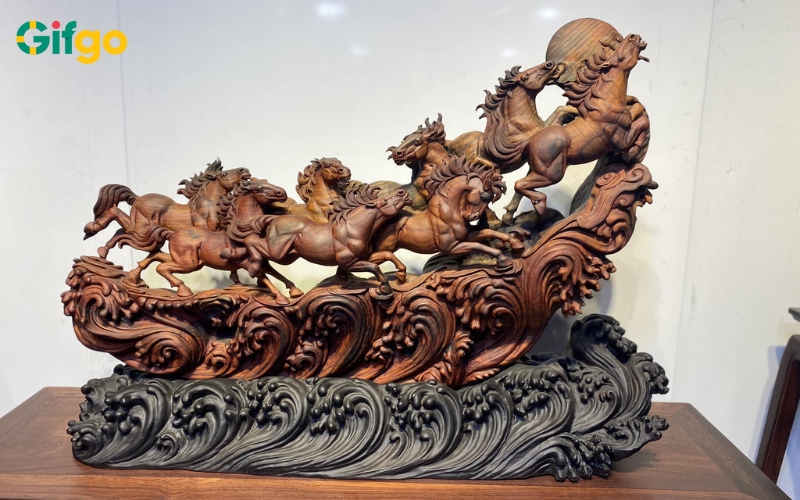Tranh gỗ nghệ thuật thay cho lời chúc sự nghiệp vững chãi. Những bức tranh gỗ điêu khắc chủ đề "Thuận buồm xuôi gió" hay "Tùng hạc diên niên" là lựa chọn đẳng cấp dành cho những mối quan hệ trân quý. Từng đường nét chạm trổ sắc sảo trên nền gỗ quý không chỉ thể hiện quyền uy mà còn tượng trưng cho lời chúc sự nghiệp vững chãi như cây cổ thụ trước gió bão.