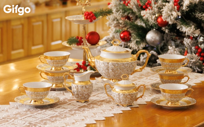 Bộ trà và ấm chén sứ trắng cao cấp - theo quy luật tương sinh, Thổ luôn là điểm tượng vững chắc để Kim phát triển, vì thế những vật phẩm từ gốm sứ cao cấp luôn mang lại sự bình an và ổn định cho người nhận. Một bộ ấm chén sứ trắng trang nhã, điểm xuyết những đường nét tinh xảo không chỉ là món quà trang trí phòng khách thêm phần ấm cúng, mà còn là lời chúc về sự sum vầy, gắn kết và bền vững cho cả gia đình trong năm mới.