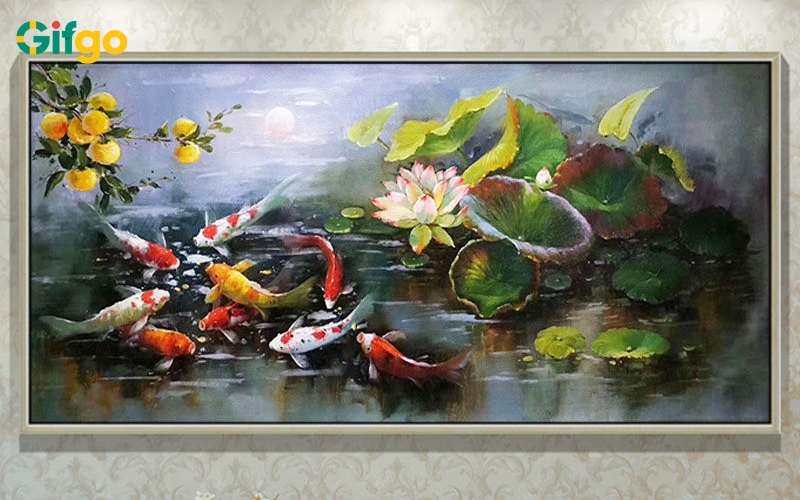 Tranh phong thủy chủ đề Nước đại diện cho lời chúc thịnh vượng trường tồn. Những bức tranh "Thuận buồm xuôi gió" với cánh buồm no gió giữa biển khơi hay "Cửu ngư quần hội" bên hồ nước trong xanh là món quà không thể thay thế cho người mệnh Thủy. Mỗi bức tranh là một lời chúc về sự hanh thông, mong cầu cho người nhận một năm mới tiền bạc dồi dào như nước đổ về nguồn, sự nghiệp thăng tiến và hạnh phúc viên mãn bên gia đình.