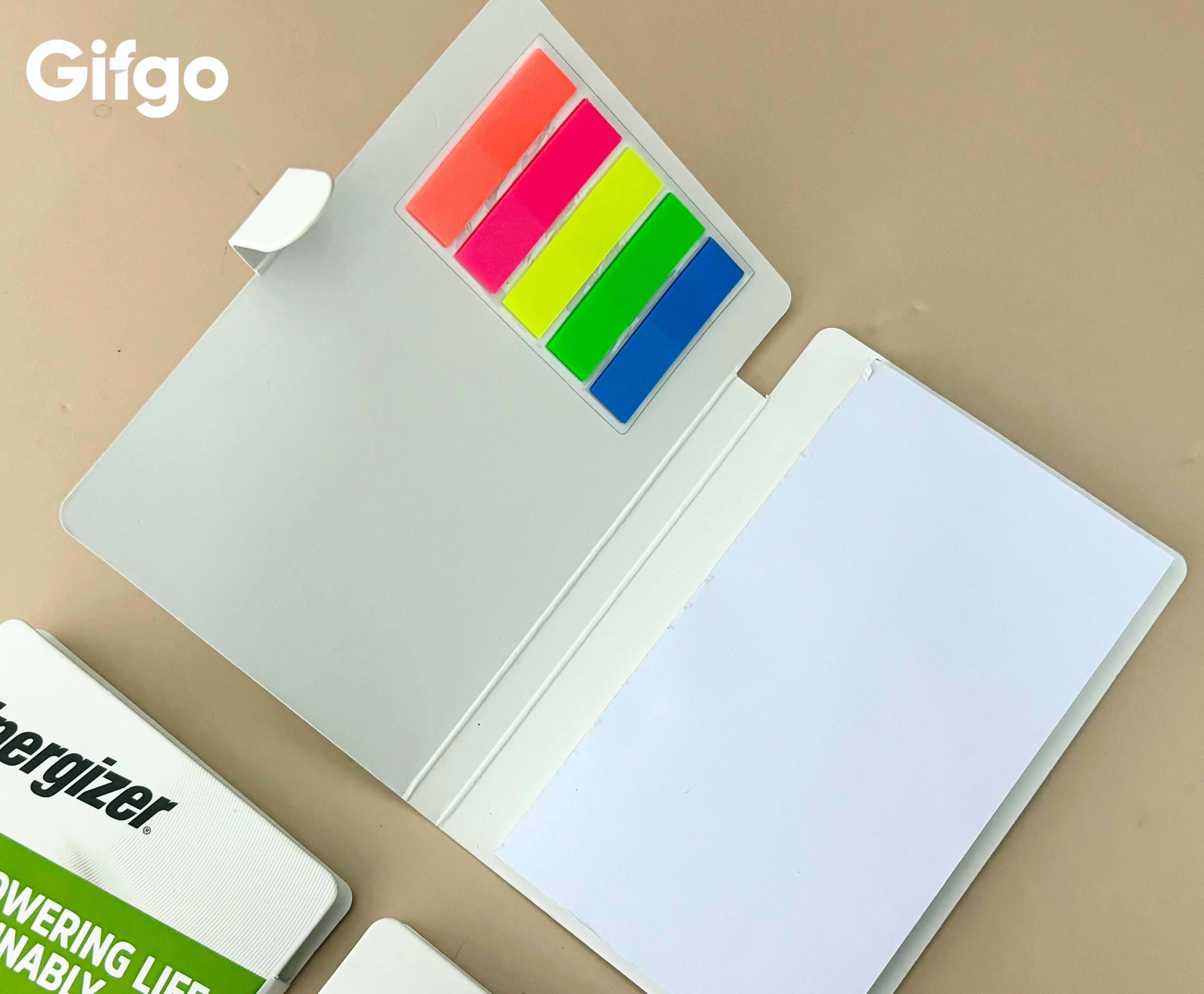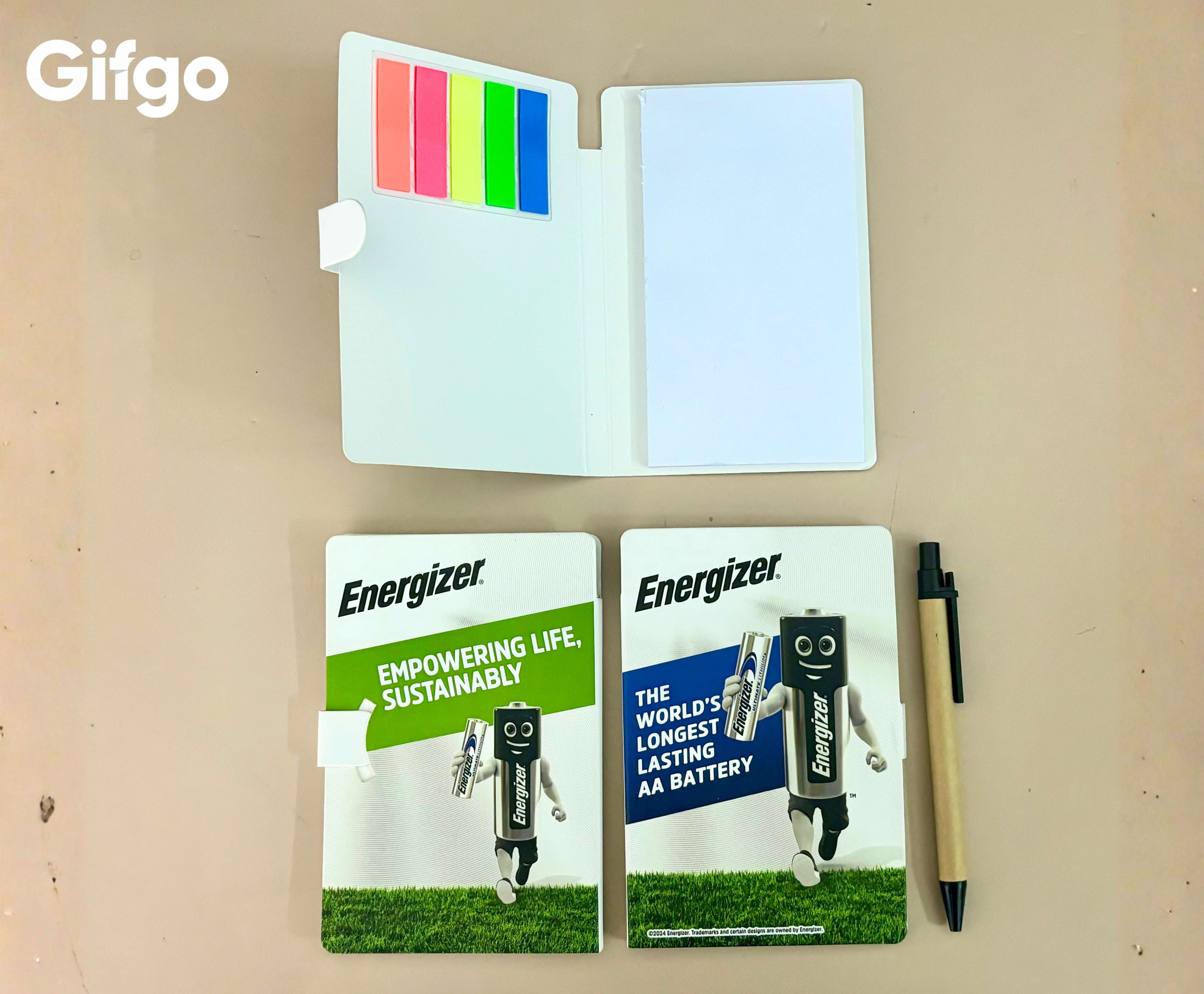 Sổ tay ghi chép & Giấy note tiện lợi: Hình ảnh chú thỏ Energizer tràn đầy năng lượng trên bìa sổ như lời nhắc nhở về sự bền bỉ trong công việc. Đi kèm là các tập giấy note giúp bạn dễ dàng ghi lại những ý tưởng lóe sáng hay lịch trình quan trọng.