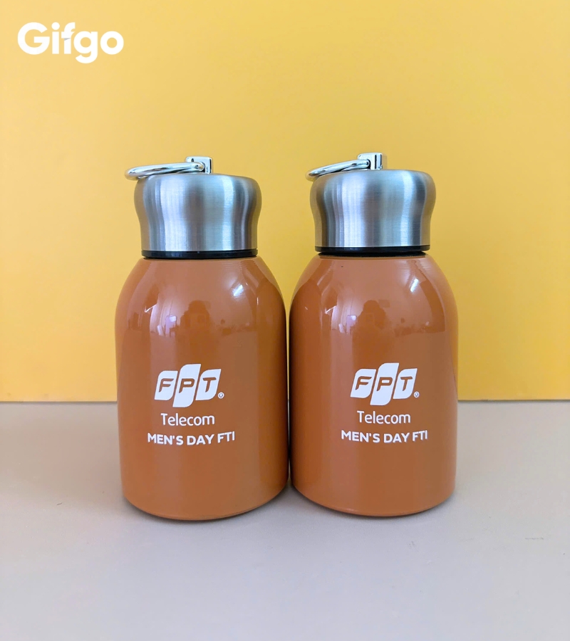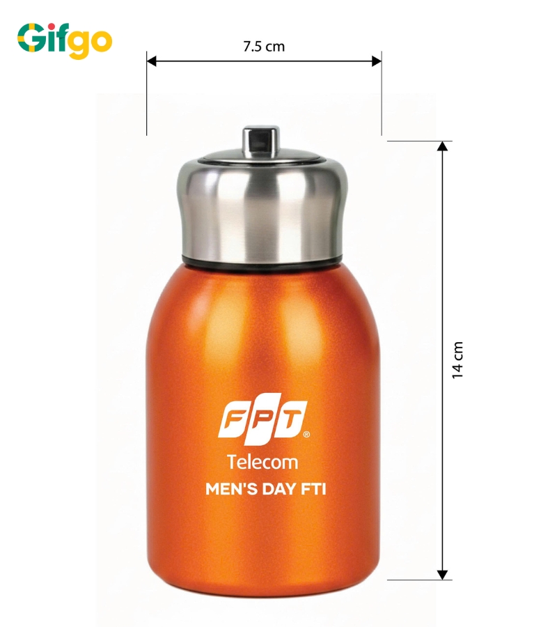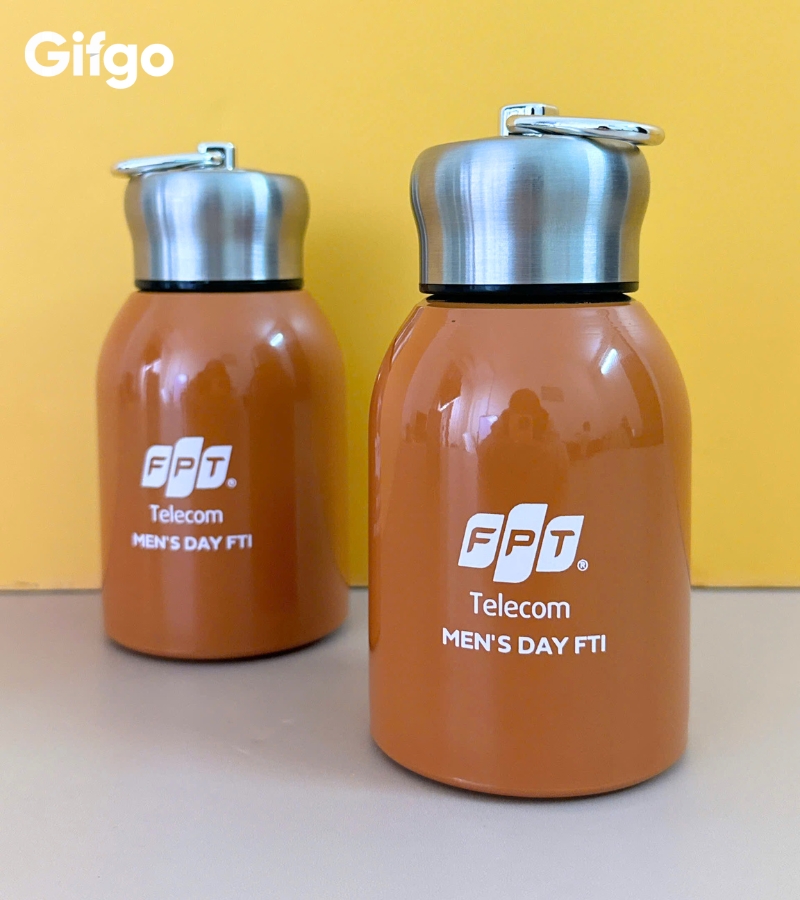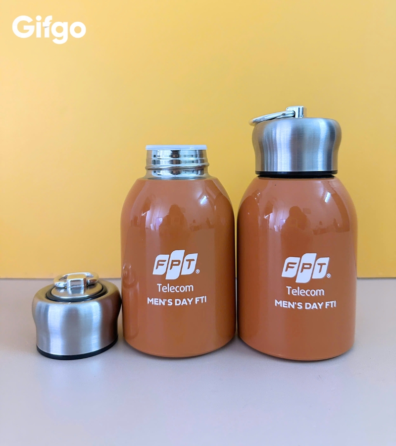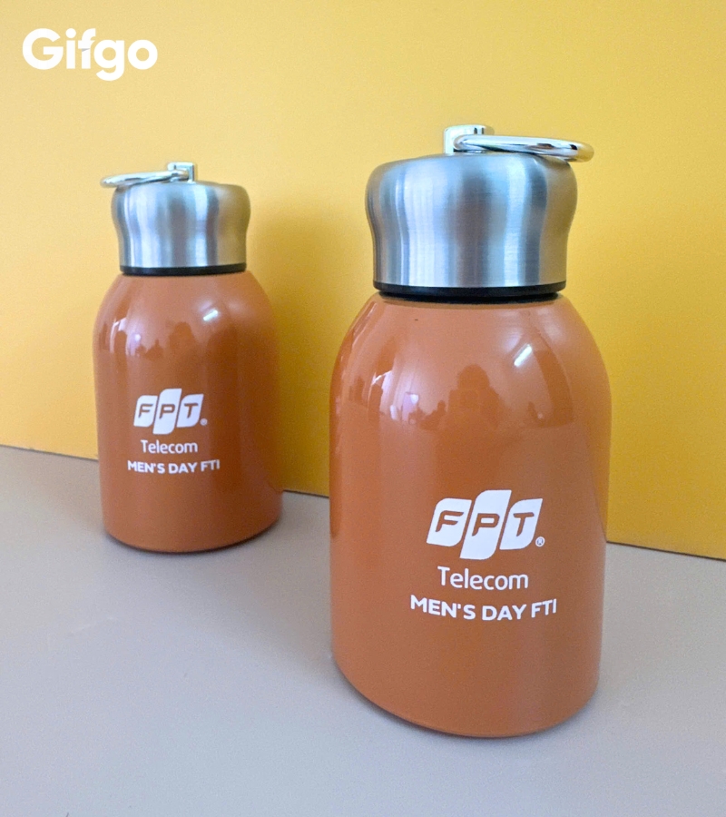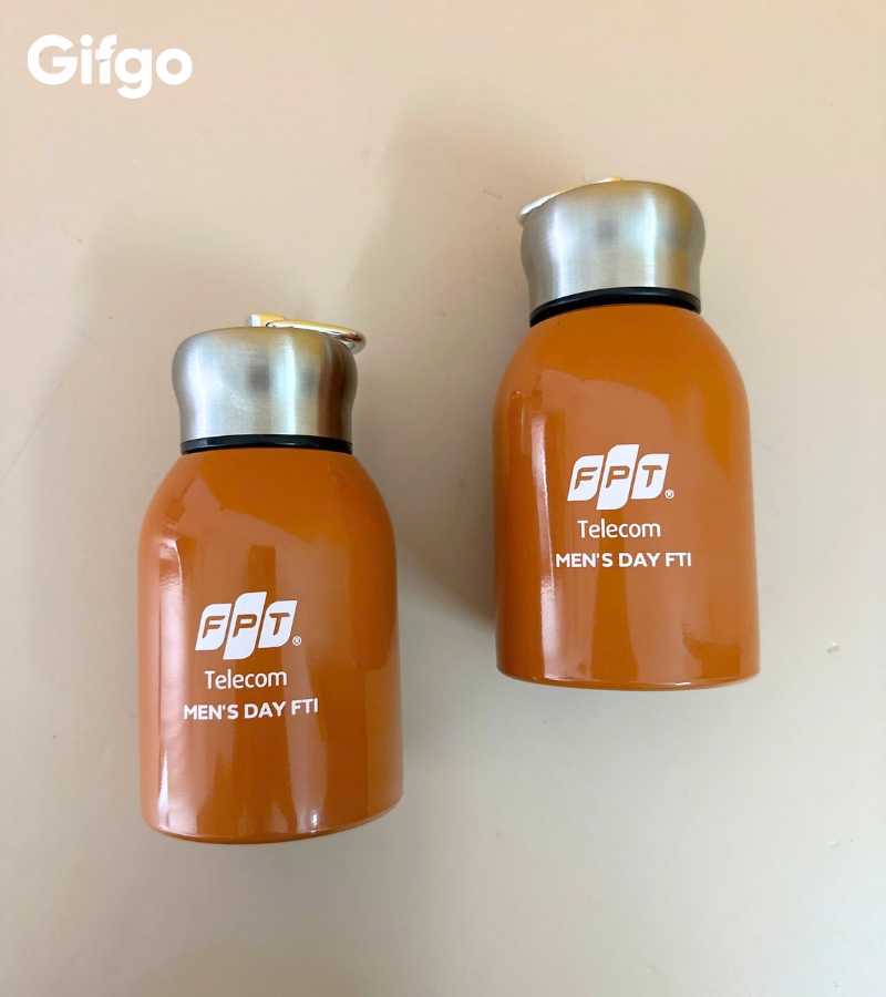 Sự kết hợp giữa phần thân bình mang sắc cam rực rỡ cùng màu cờ sắc áo của FPT và phần nắp bạc kim loại sáng bóng đã tạo nên một tổng thể vừa năng động, vừa sang trọng, rất phù hợp với phong cách trẻ trung và thực tế của các anh em công nghệ. Cái hay của Gifgo khi tư vấn cho FPT Telecom chính là sự tinh tế trong khâu in ấn và cá nhân hóa.