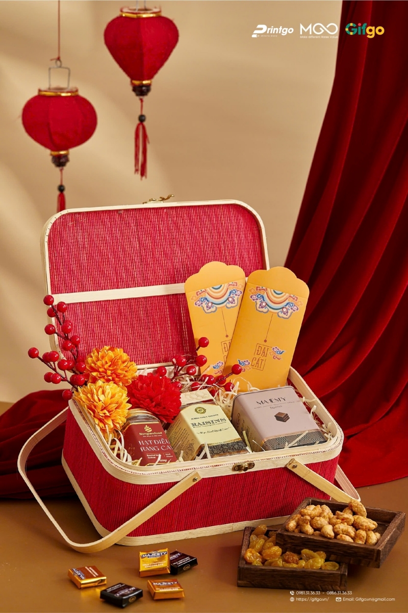 Danh mục quà Tết đa dạng và linh hoạt: Từ giỏ quà Tết tặng khách hàng, hộp quà Tết sức khỏe, hộp rượu cao cấp đến các set quà mang yếu tố truyền thống và phong thủy, Gifgo đáp ứng nhiều nhu cầu biếu tặng khác nhau.