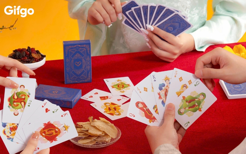 - Bộ bài tứ phủ: Bộ bài lấy cảm hứng từ tín ngưỡng dân gian Việt Nam, mang màu sắc văn hóa và chiều sâu tinh thần, phù hợp với những hộp quà Tết hướng đến sự trang trọng, khác biệt và giá trị truyền thống.