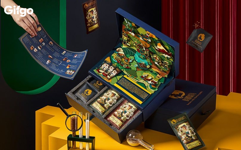 - Hộp Gifgo 2 tầng cao cấp & túi giấy đồng bộ: Thiết kế hộp hai tầng chắc chắn, bố cục khoa học, kết hợp túi giấy cùng tông giúp hoàn thiện trải nghiệm quà tặng, nâng tầm sự trang trọng khi trao tay.