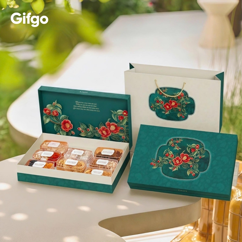 Thuận tiện trong vận chuyển và bảo quản: Nên ưu tiên các hộp quà có kết cấu chắc chắn, dễ đóng gói và vận chuyển, đặc biệt khi cần giao quà Tết đến nhiều địa điểm khác nhau.