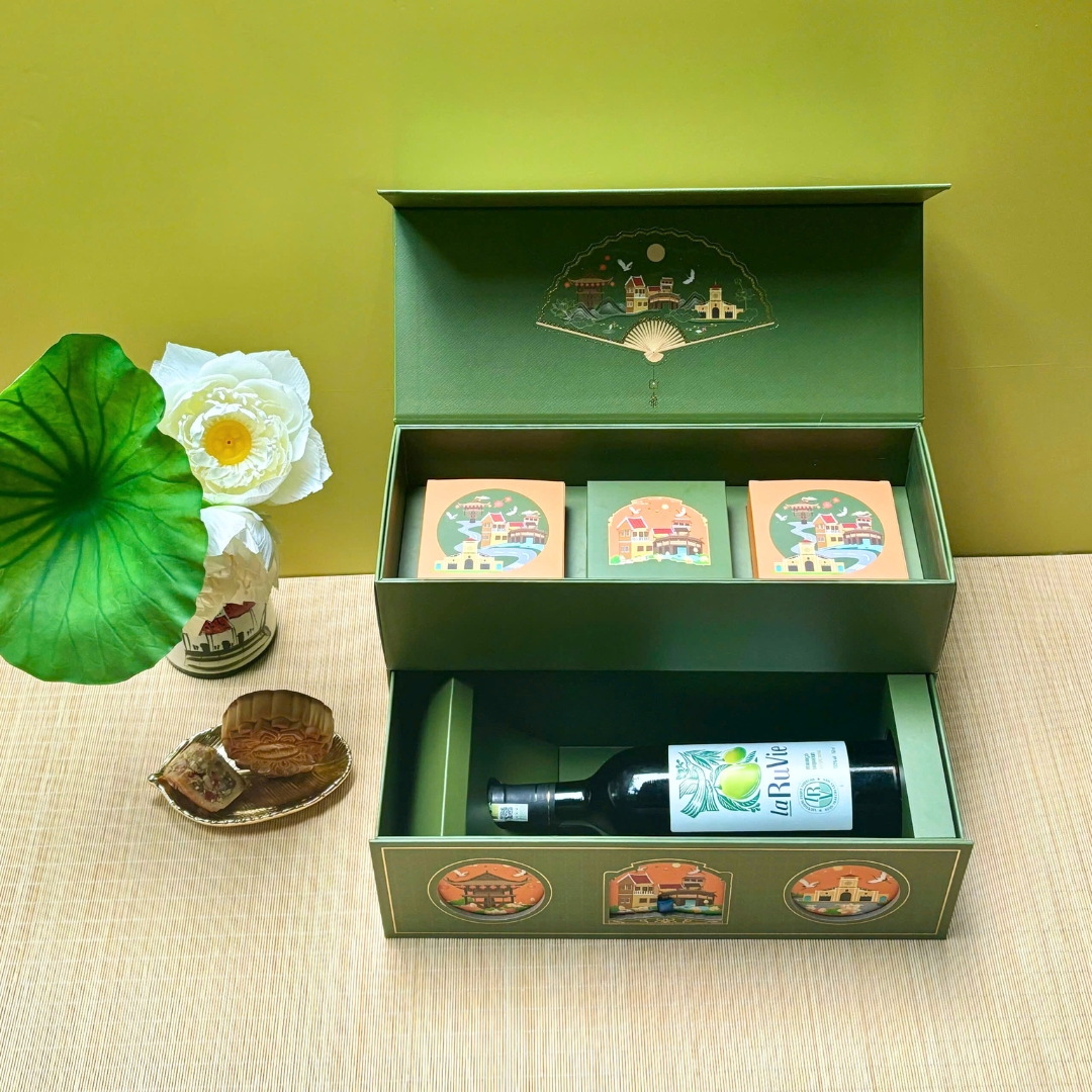 Bộ quà tặng Trung Thu Lam Vân không chỉ chinh phục bằng vẻ ngoài mà còn bởi những lớp hương vị bên trong, được chế tác từ nguyên liệu tinh túy nhất của thiên nhiên Việt Nam. Mỗi chiếc bánh và chai rượu là một kiệt tác ẩm thực, nơi truyền thống gặp gỡ sự sáng tạo, mang đến trải nghiệm vị giác khó quên. Hãy tưởng tượng bạn đang lạc bước qua ba miền đất nước, nơi từng miếng bánh và ngụm rượu kể nên câu chuyện riêng biệt, đánh thức mọi giác quan.