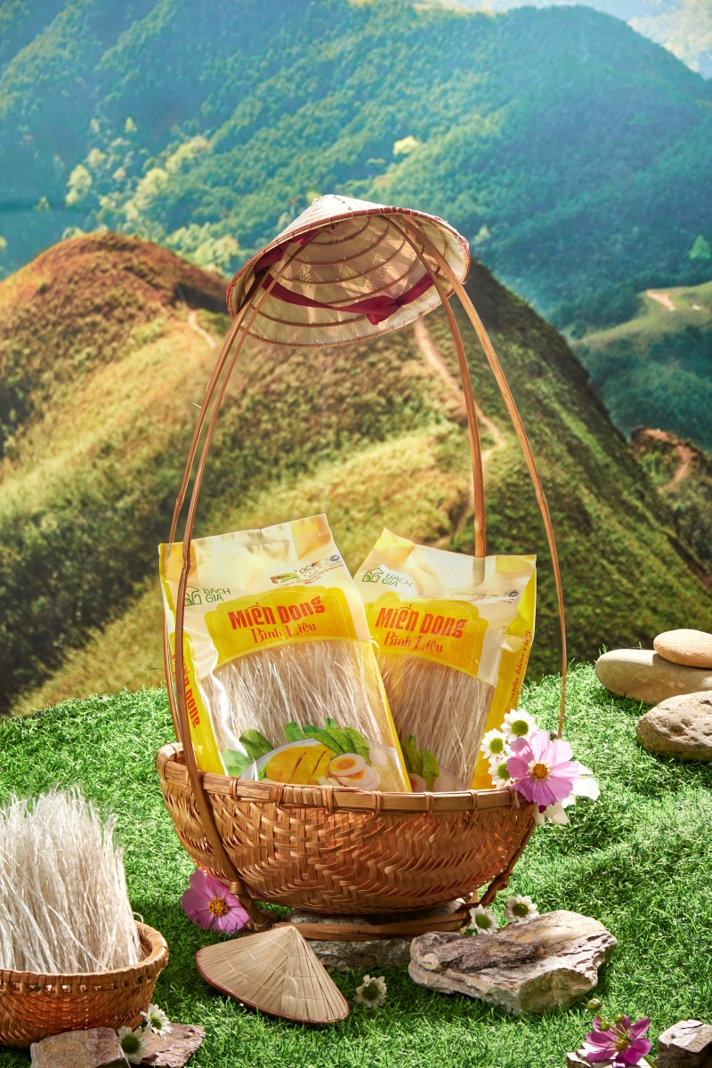 Miến dong Bình Liêu được chế biến từ củ dong riềng trồng tại vùng cao, sử dụng nguồn nguyên liệu bản địa được tuyển chọn cẩn thận. Nhờ đó, sợi miến có độ trong tự nhiên, dai vừa phải và không pha trộn tạp chất. Quy trình sản xuất tập trung giữ nguyên giá trị của tinh bột dong, giúp miến khi nấu chín mềm đều, không bị nát hay bở. Từng sợi miến thể hiện sự chăm chút và kinh nghiệm của người làm nghề, mang đến hương vị mộc mạc, thuần khiết, gợi cảm giác gần gũi của những bữa cơm sum vầy truyền thống.