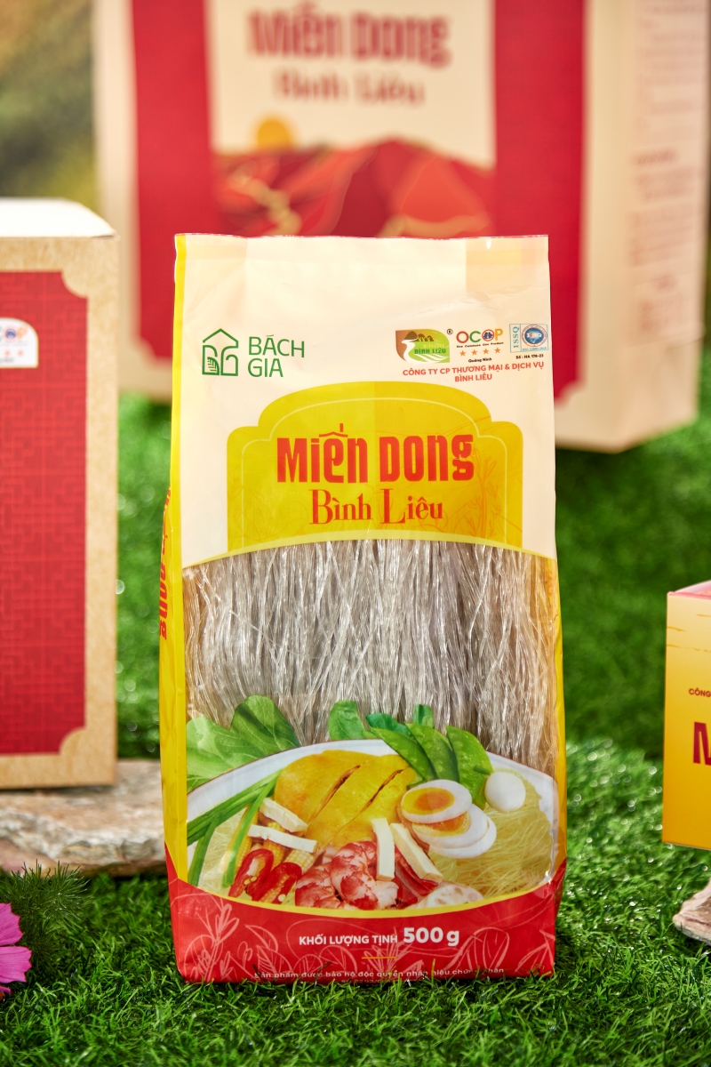 Xuất xứ từ vùng núi Bình Liêu, Quảng Ninh – nơi nổi tiếng với nguồn dong riềng chất lượng, miến dong Bình Liêu (miến dong Bách Gia) mang đậm dấu ấn của nghề làm miến truyền thống được lưu giữ qua nhiều thế hệ. Sản phẩm do Công ty TNHH Miến Dong Bình Liêu trực tiếp nghiên cứu, sản xuất và phát triển, gắn liền với vùng nguyên liệu bản địa và định hướng phát triển bền vững. Nhờ chú trọng từ nguồn gốc, quy trình đến chất lượng thành phẩm, miến dong Bình Liêu không chỉ đạt chứng nhận OCOP cấp quốc gia mà còn dần khẳng định vị thế như một đặc sản tiêu biểu của Quảng Ninh trên thị trường trong nước.