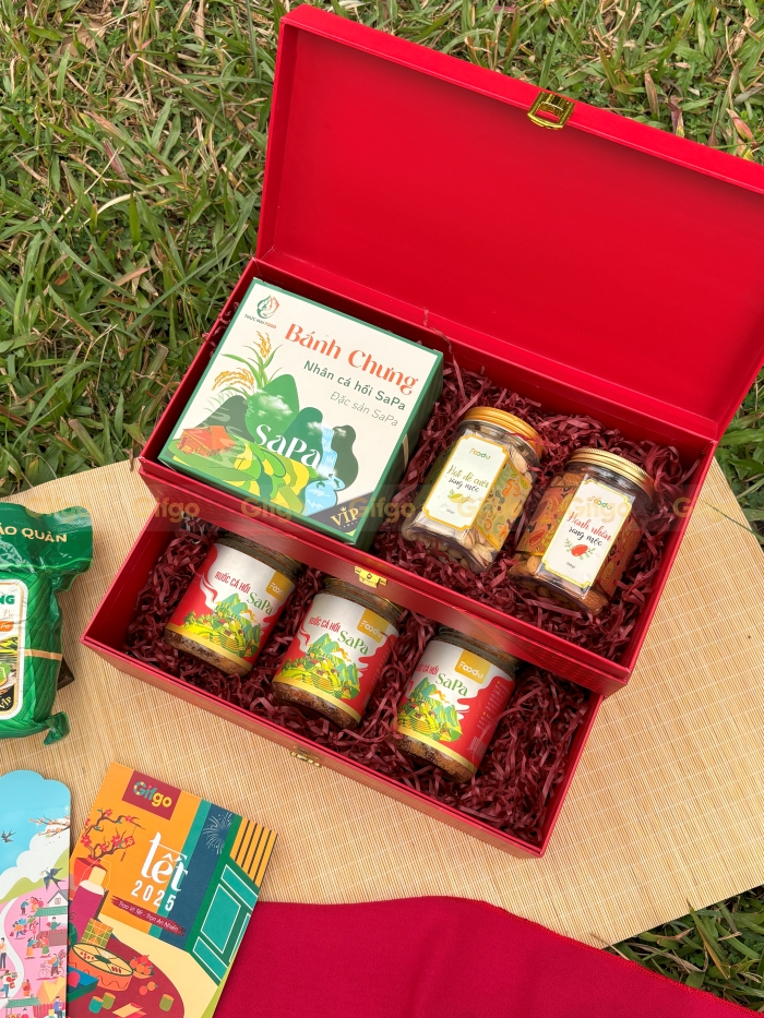 Mang đến trải nghiệm trọn vẹn cho mỗi gia đình, Set Quà Tết Tây Bắc 01 là sự kết hợp của tinh hoa ẩm thực Việt. Giữ gìn nét văn hóa truyền thống với bánh chưng nhân cá hồi Sa Pa ấn tượng, mỗi set quà còn sở hữu các loại hạt cùng ruốc cá hồi đầy dinh dưỡng. Hứa hẹn đây sẽ trở thành lựa chọn lý tưởng trong dịp Tết năm nay.