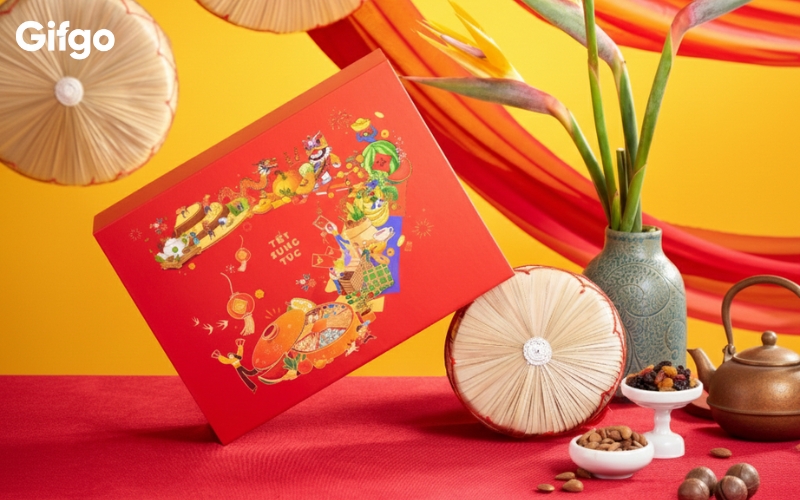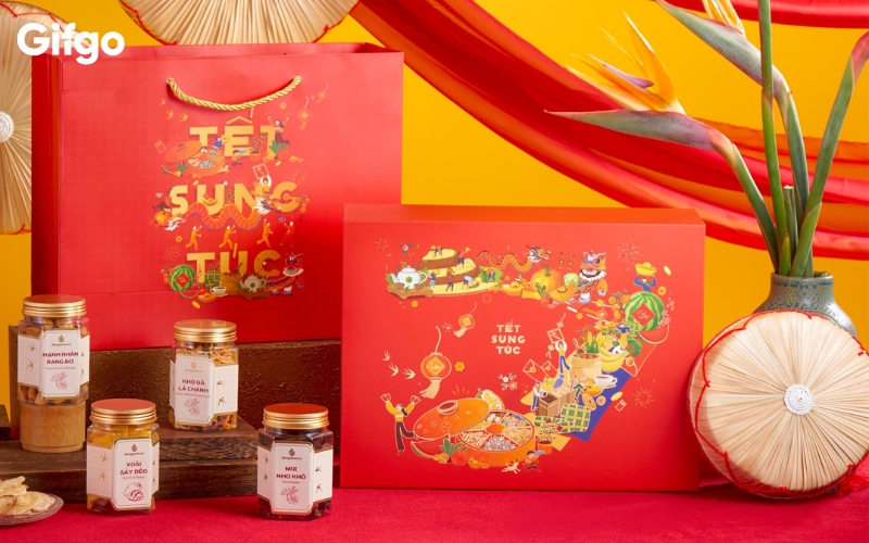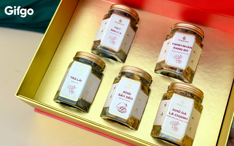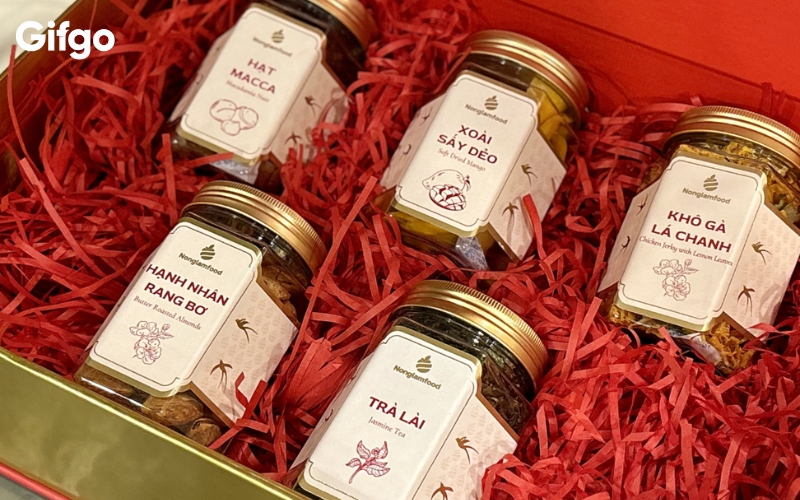 Thành phần quà phong phú, kết hợp hài hòa giữa ẩm thực, văn hóa và yếu tố sáng tạo.